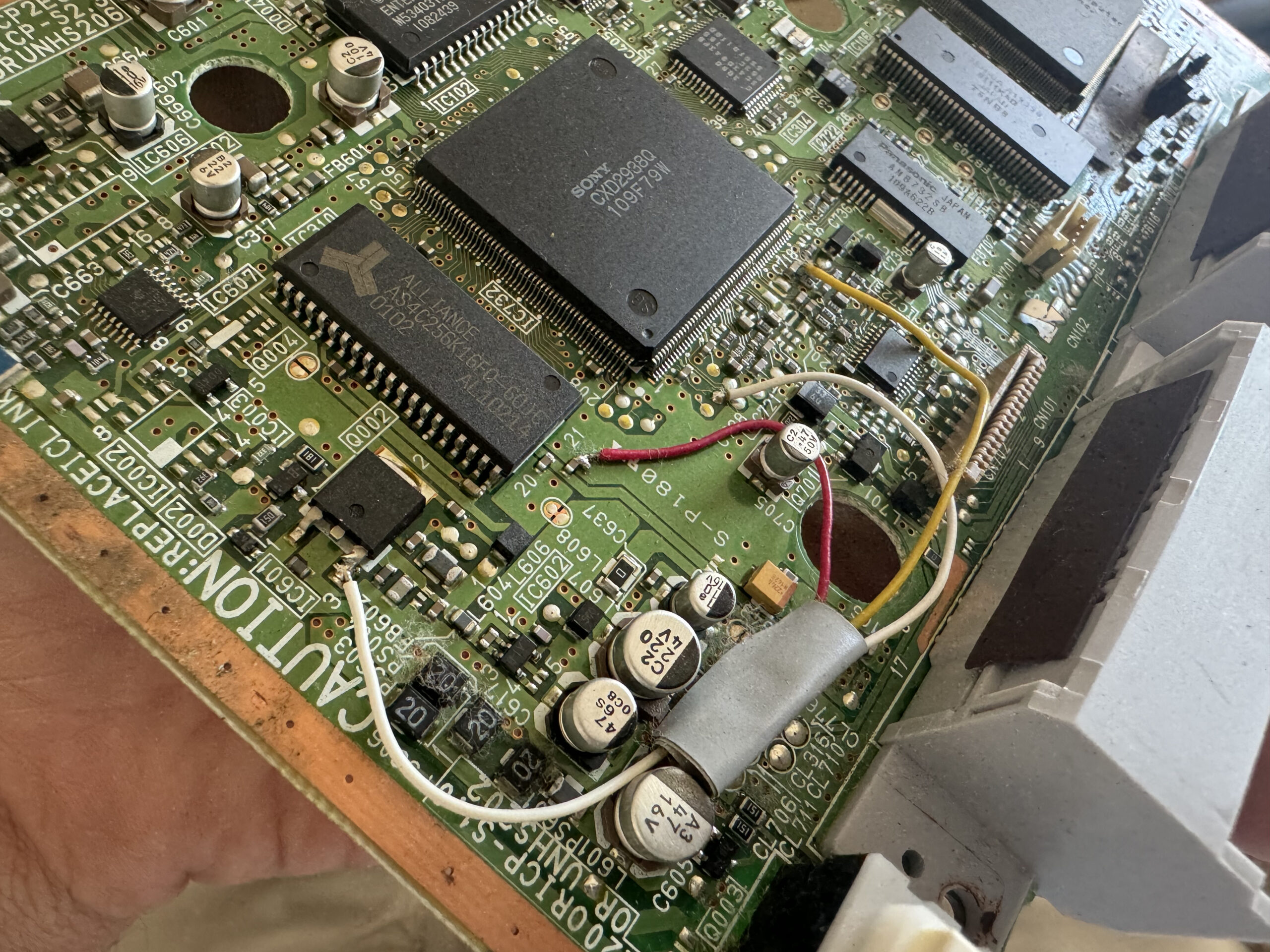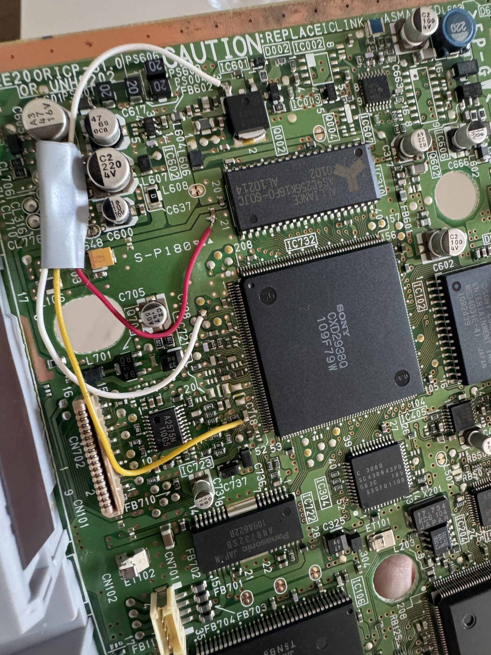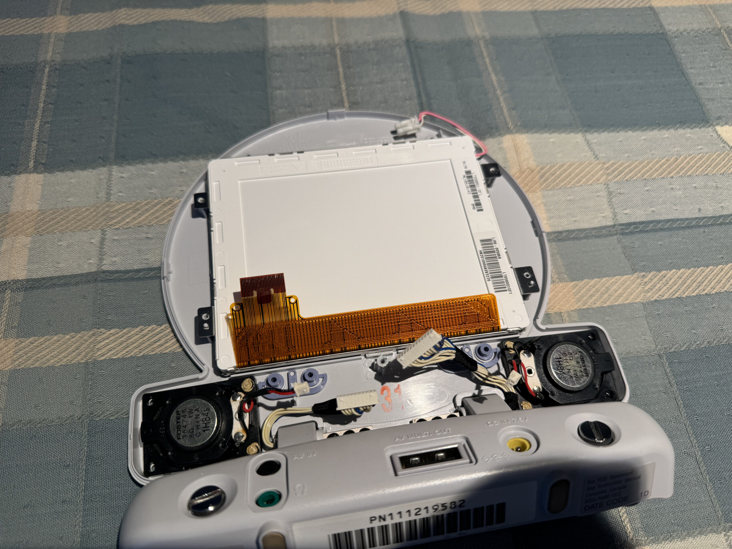 - Conversão do Ecrã LCD O ecrã antigo não foi substituído. Em vez disso, realizou-se uma solda de um fio (chant) para converter a região do ecrã de NTSC para PAL. Esta modificação foi feita com precisão para garantir a funcionalidade correta sem danificar os circuitos internos.