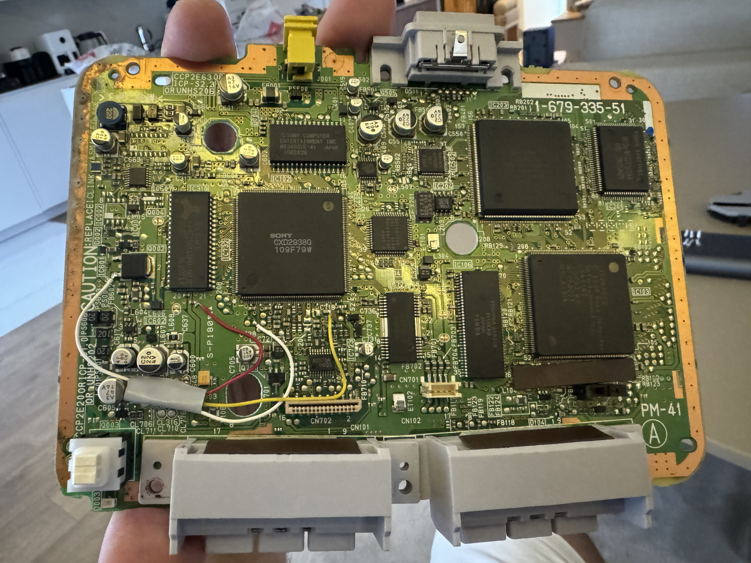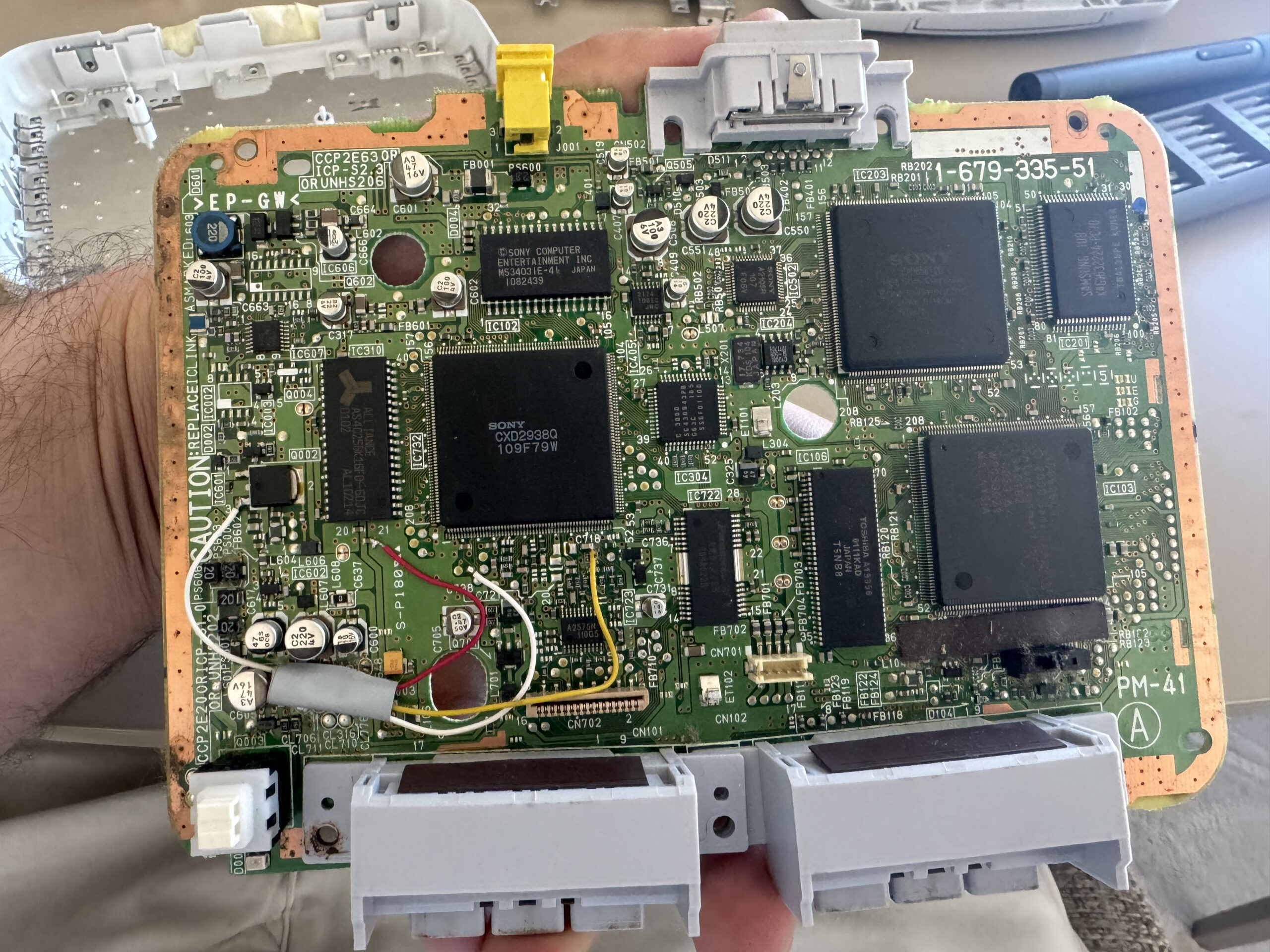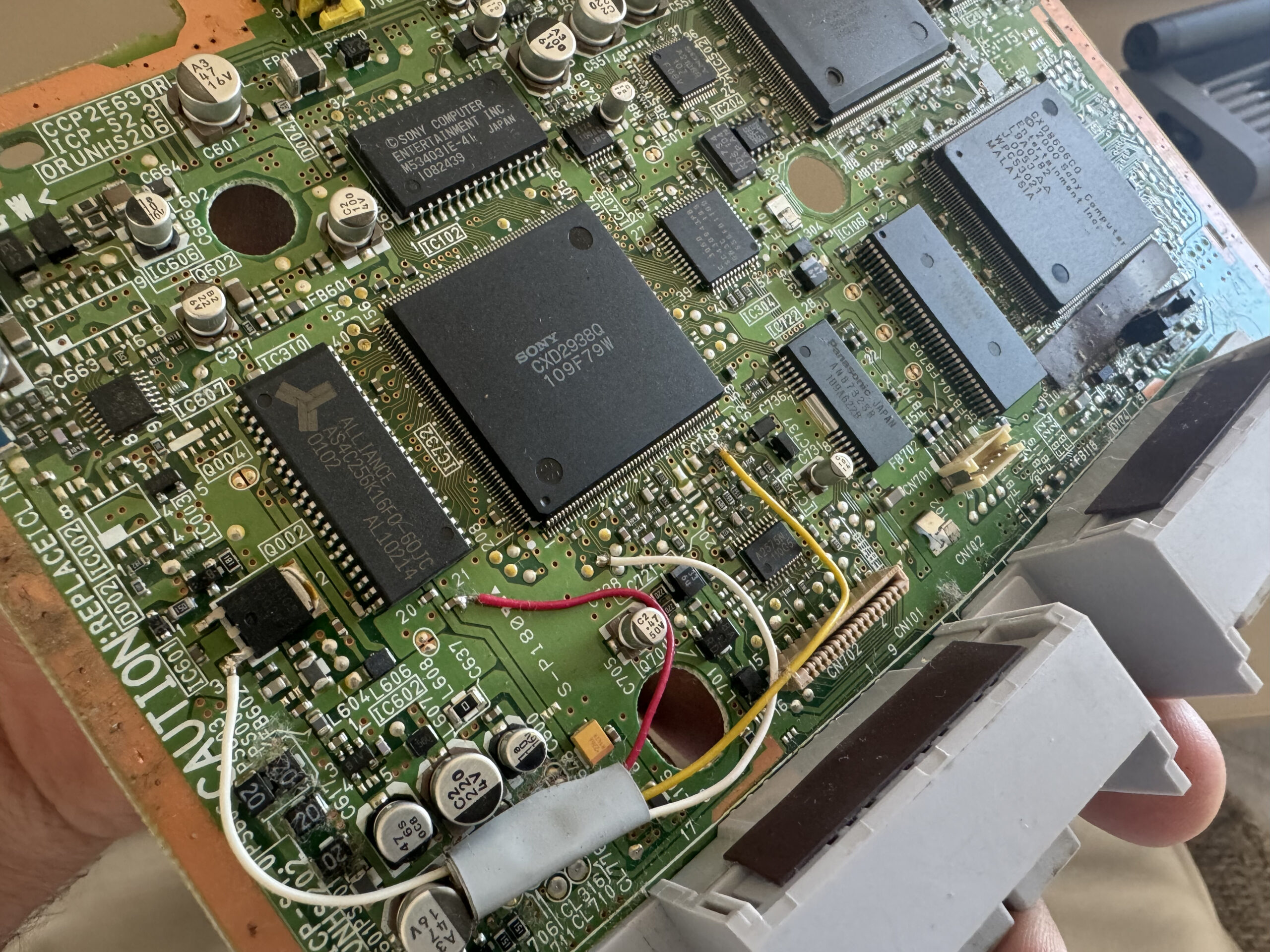 - Conversão do Ecrã LCD O ecrã antigo não foi substituído. Em vez disso, realizou-se uma solda de um fio (chant) para converter a região do ecrã de NTSC para PAL. Esta modificação foi feita com precisão para garantir a funcionalidade correta sem danificar os circuitos internos.