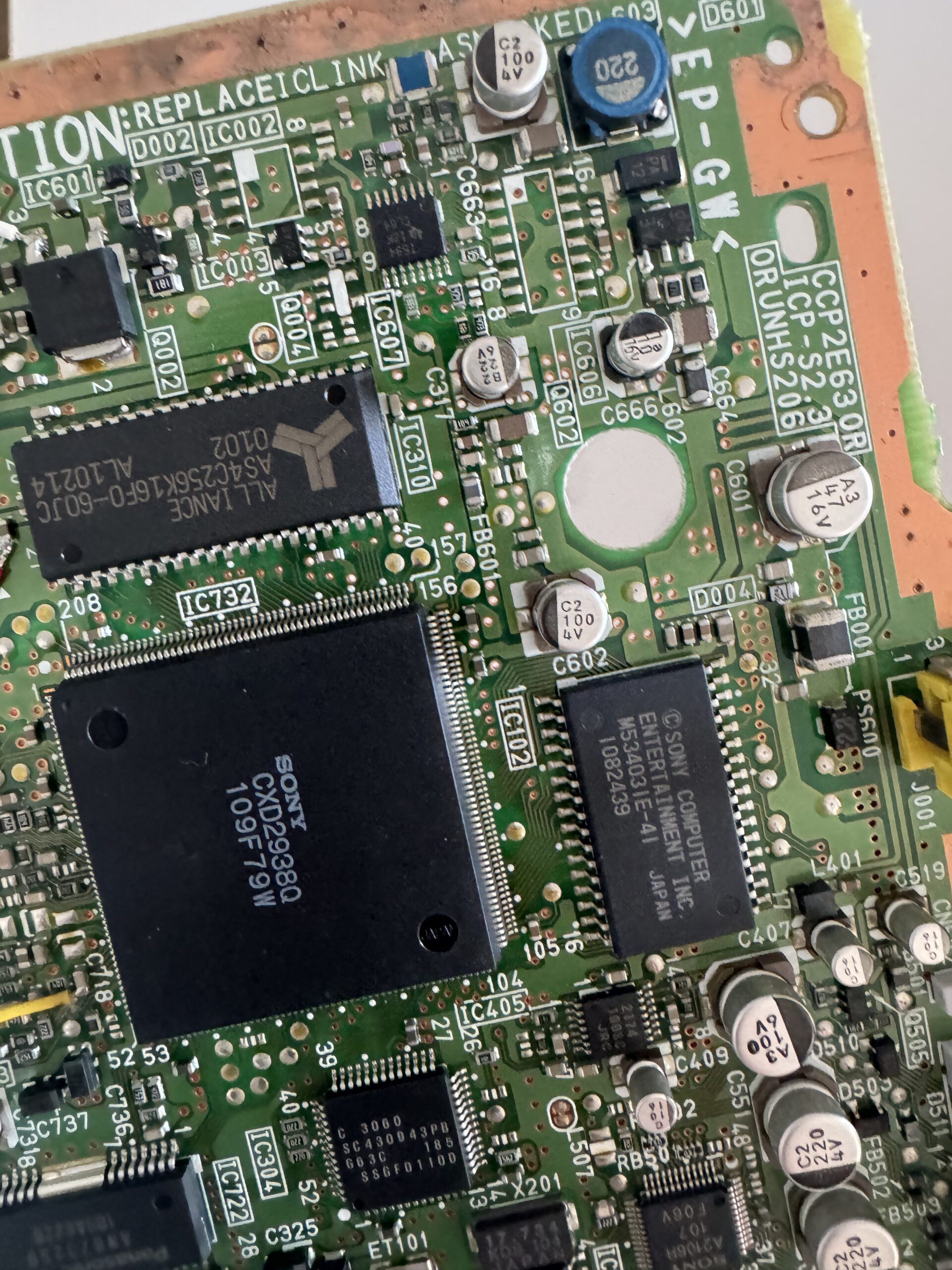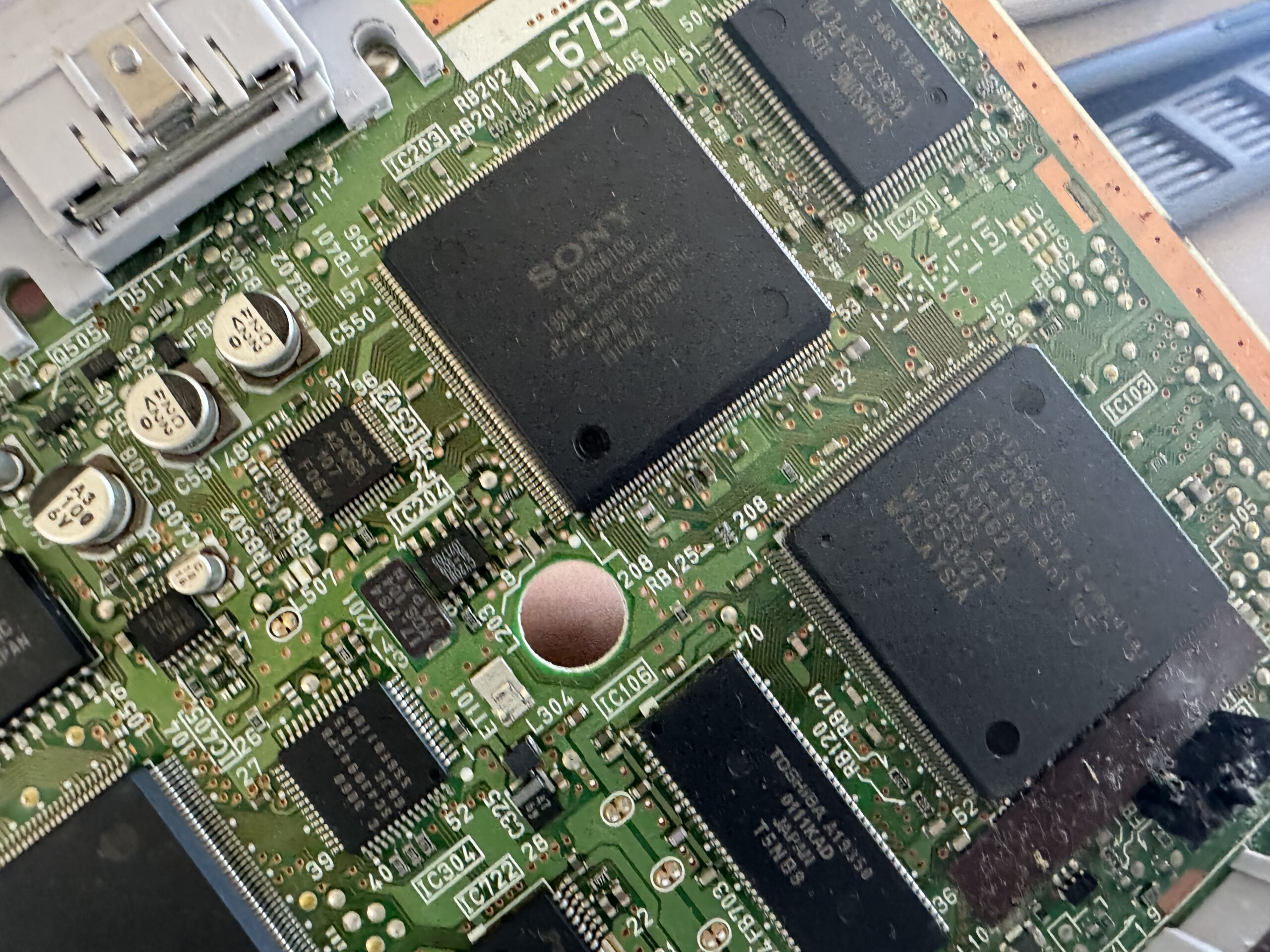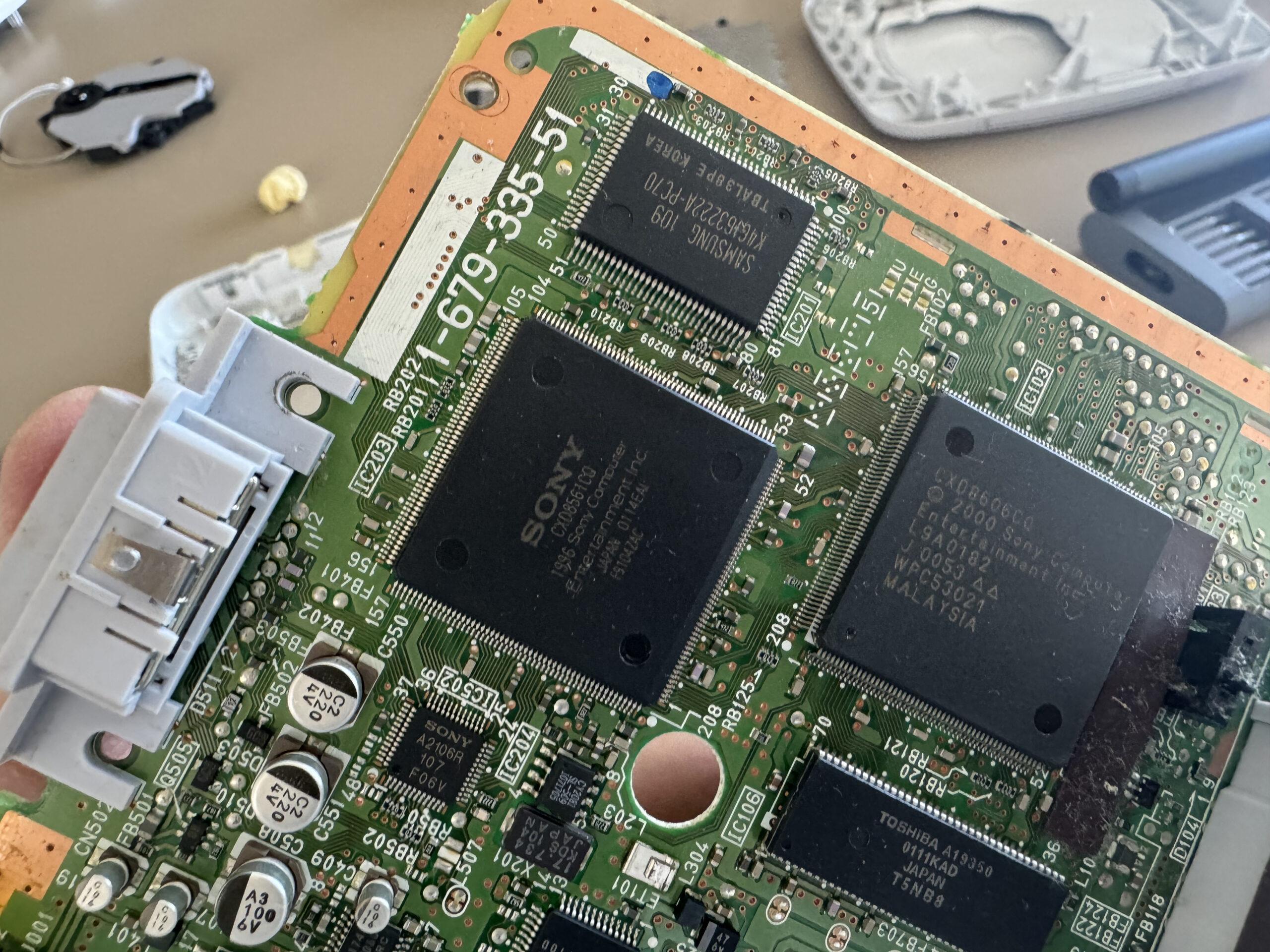 - Limpeza da Motherboard A motherboard foi cuidadosamente limpa para remover pó e resíduos acumulados ao longo dos anos. Esta limpeza ajuda a prevenir futuros problemas de funcionamento e melhora a eficiência da consola.